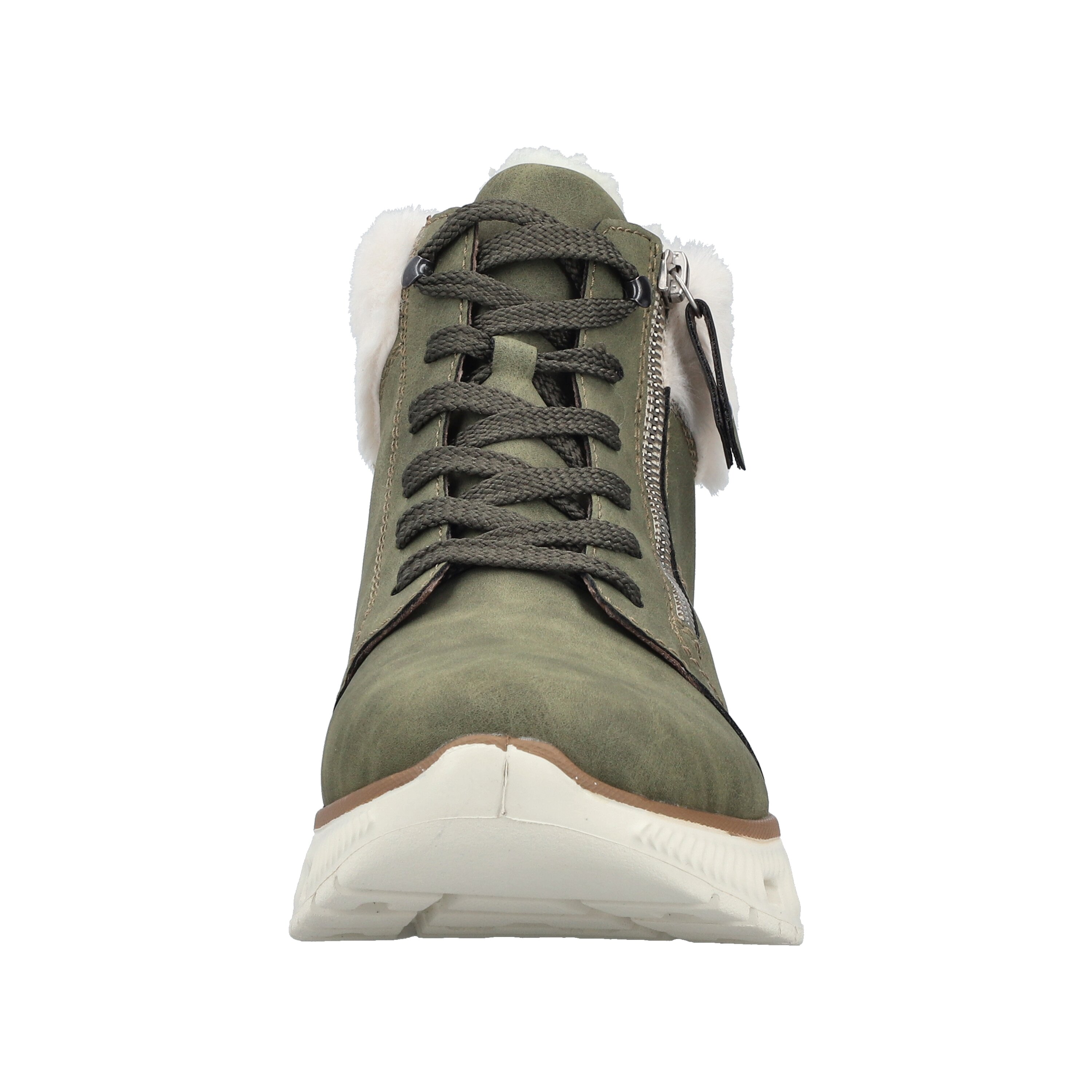 Dámská kotníková obuv se zateplením v širší šíři je komfortním obutím s paměťovou pěnou, která poskytne chůzi jako po mechu. Vrchní materiál je syntetika. Vnitřní materiál je textil. Stélka je vyměkčená s paměťovou pěnou. Obuv je vybavena tex membránou. Obuv je v šíři H. Podešev je syntetická, flexibilní. Výška podpatku je 3,8 cm. Obuv je zateplena. Barva u tohoto vzoru je zelená.