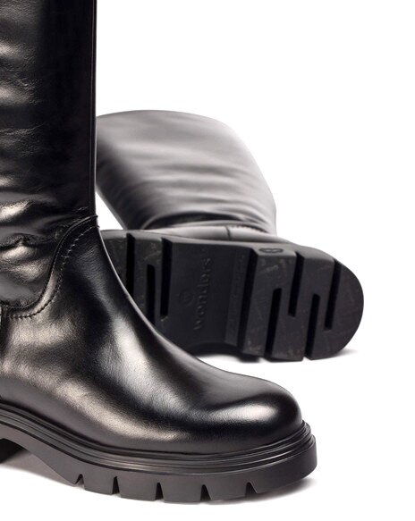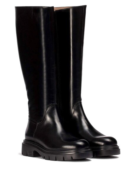 Elegantní kozačky z hladké černé kůže na vyšší podešvi. Stylová silueta, snadné obouvání díky zipu a maximální pohodlí při každém kroku.